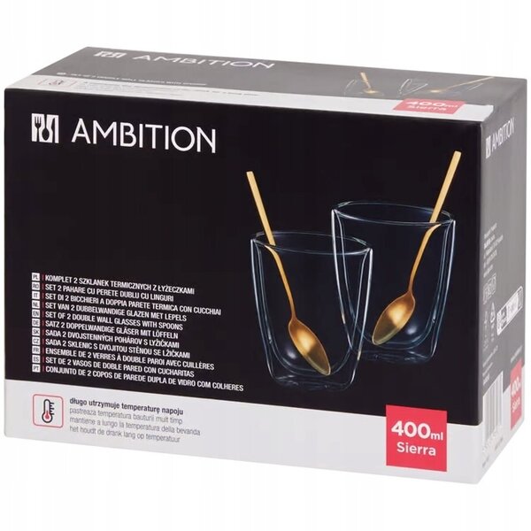 Ambition koffie- en theeglazen 250 ml 2 stuks DUBBELWANDIG...Meer informatie