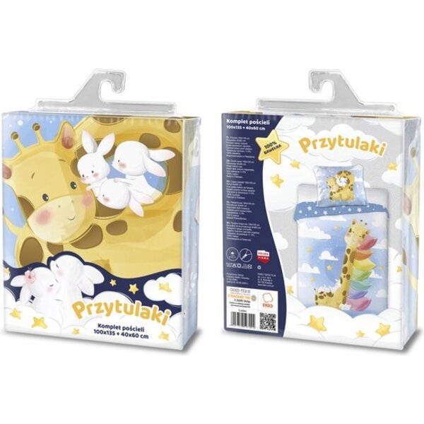 Cuddles Baby Dekbedovertrek, Giraf. Lief katoenen baby dekbedovertrek met een afbeelding van een giraf. Dit girafje en zijn regenboog kussens houden jouw kleintje graag gezelschap tijdens de slaapjes. Het overtrekje heeft een sterretjes-dessin aan de achterzijde, wat een leuk effect geeft als je het dekbedje een stukje openslaat bij het opmaken van het ledikantje. Een leuk cadeau om te geven op een babyshower of als kraam cadeau. Voorzien van een rits in zowel de overtrek als kussensloop.