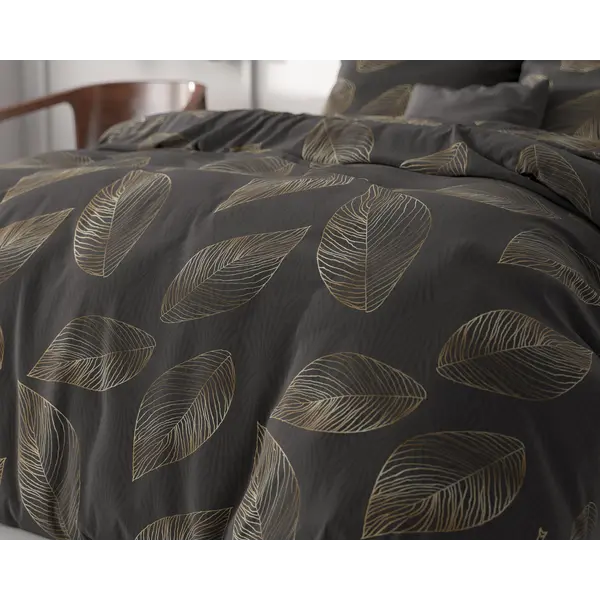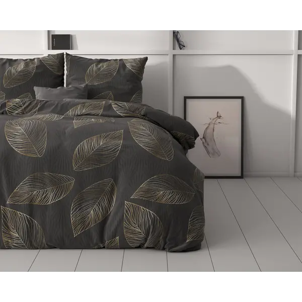 Dekbedovertrek Golden leaf Antraciet - inclusief kussensloop/kussenslopen...Meer informatie