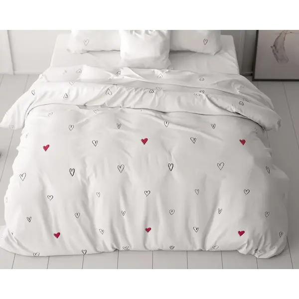 Dekbedovertrek Hearts Everywhere Wit - inclusief kussensloop/kussenslopen...Meer informatie