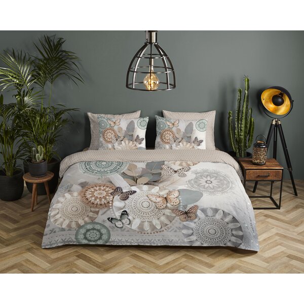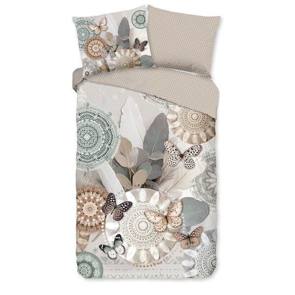 Satijnen dekbedovertrek alrune van HIP. Dit luxe dekbedovertrek met mandala’s met veren en vlinders, in de kleur grijs, is een dekbedovertrek dat opvalt. Een HIP dekbedovertrek is kleurrijk en uniek! Aan de achterkant van het dekbedovertrek zit altijd een leuke, bijpassende print. Een dekbedovertrek van HIP fleurt iedere slaapkamer op!