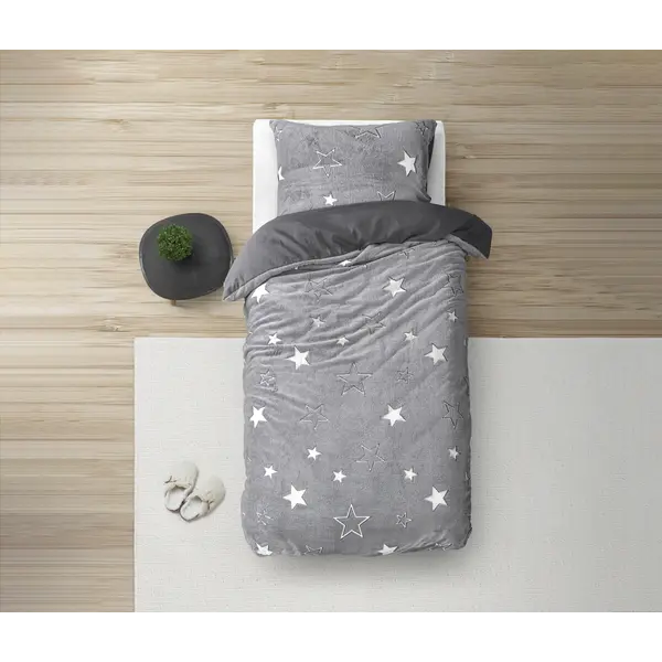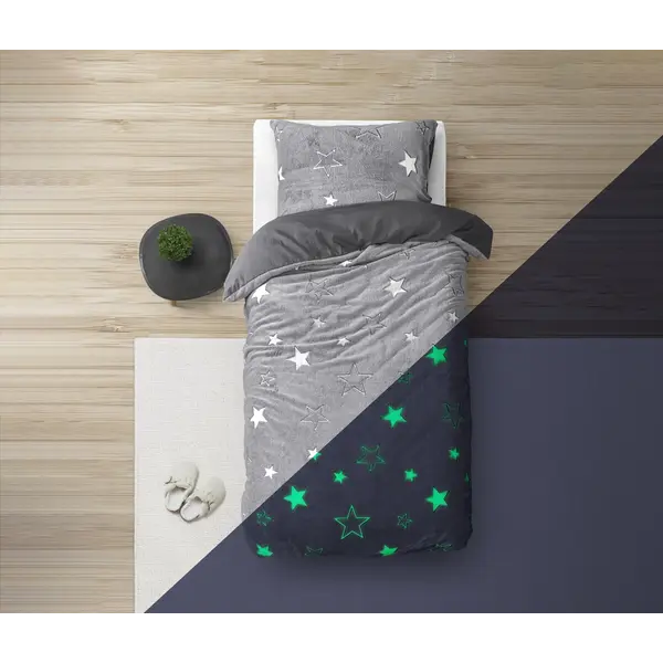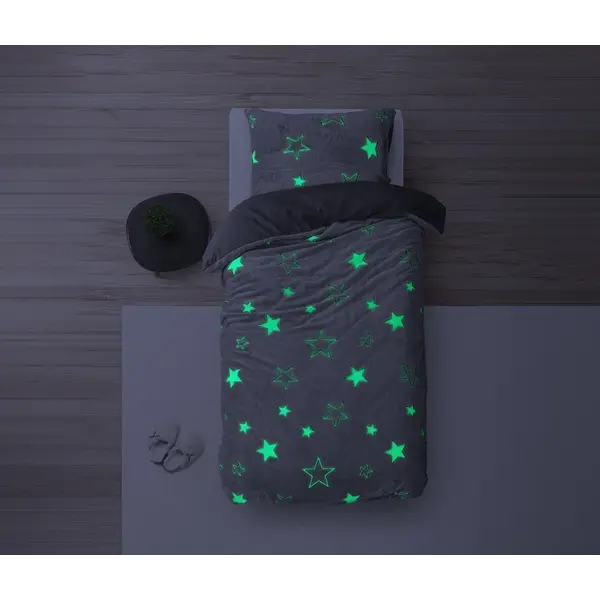 Dekbedovertrek Kids Glow in the dark Stars Grijs - Met Kussensloop...Meer informatie