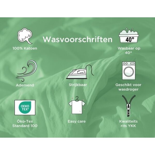 Wij raden aan om het overtrek binnenstebuiten te wassen om de duur van het dekbed te verlengen. Katoen is wasbaar op 40 graden en geschikt voor de droger.