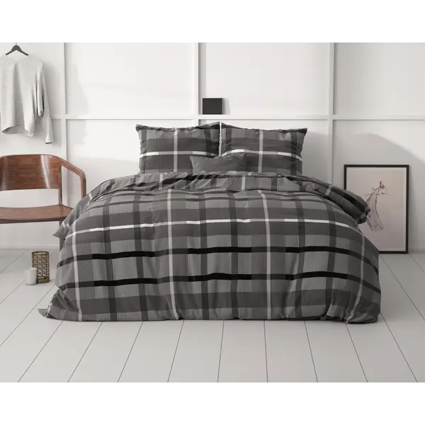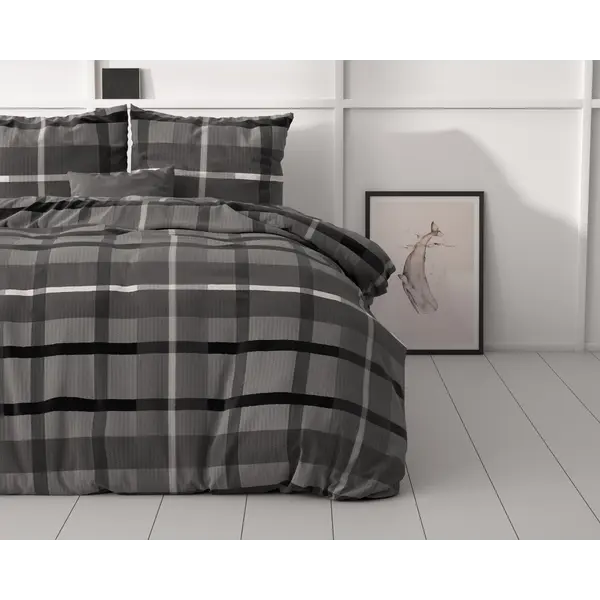 Dekbedovertrek Vintage Check Antraciet - inclusief kussensloop/kussenslopen...Meer informatie