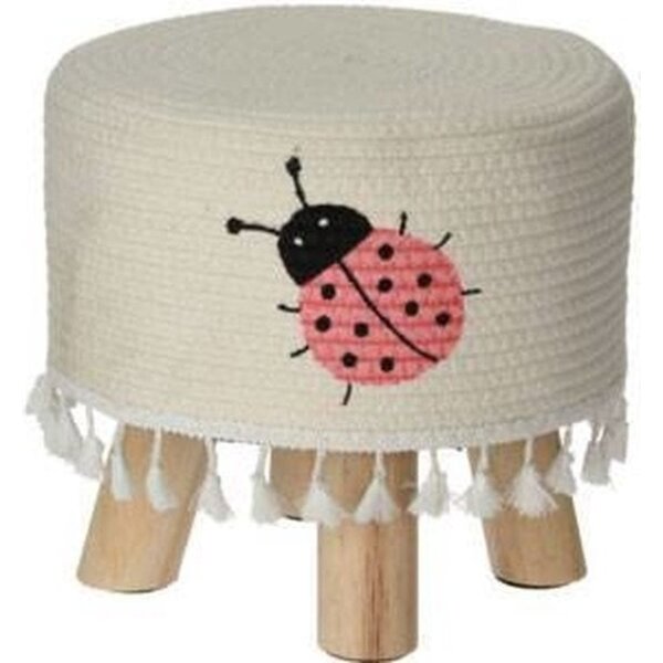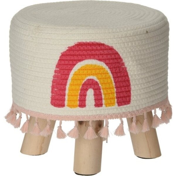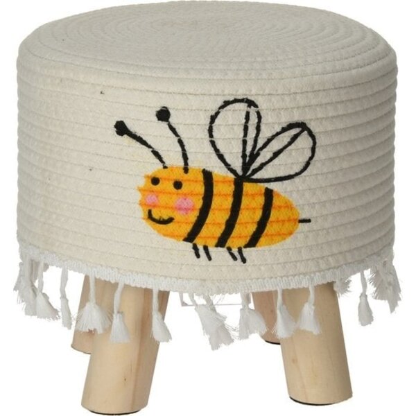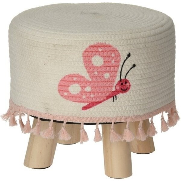 Het 25 cm hoge product heeft een comfortabele zitting met een breedte van 28 cm. Vier poten van houtachtig materiaal zorgen voor de stabiliteit van de kruk. Het product wiebelt of schommelt niet, en de charmante kwastjes dragen bij aan de subtiele boho-stijl. Opvallend is ook de afbeelding, waarvan de omtrek doet denken aan kindertekeningen. Het effect is perfect.