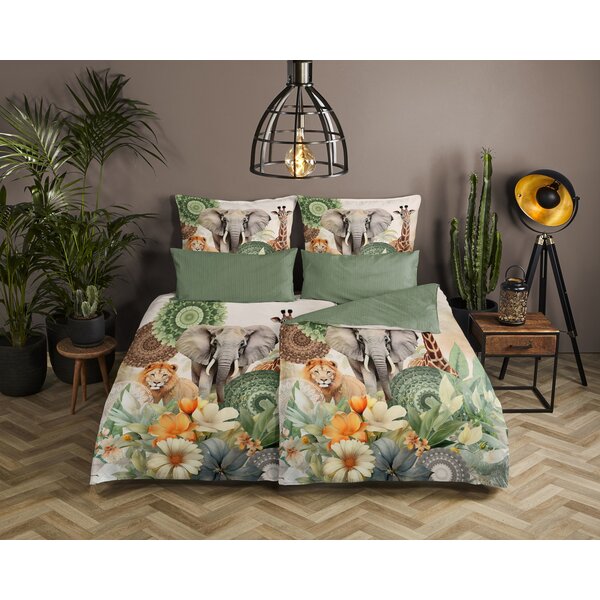 Satijnen kussensloop sagadar van HIP. Dit kussensloop in de kleur groen is een stijlvol kussensloop dat perfect past bij het bijbehorende dekbedovertrek sagadar van HIP. Het kussensloop is zelfs gemaakt van dezelfde print als de achterkant van het dekbedovertrek.