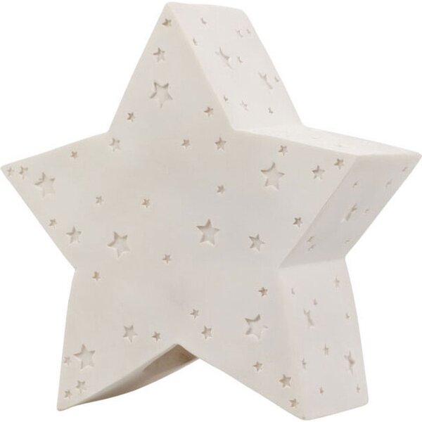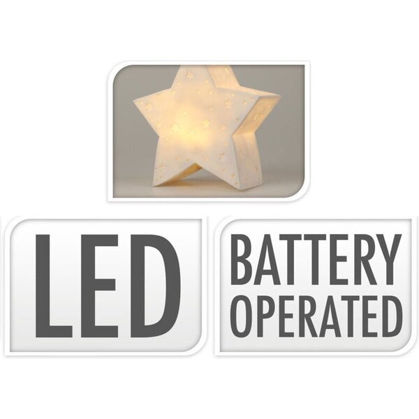 Nachtlamp met ledlicht, in de vorm van een ster. Afmetingen: 19,6 x 8,5 x 20,6 cm, werkt op batterijen.