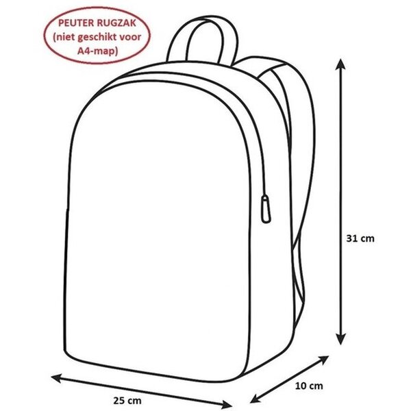 Controleer voor de aankoop de maat die u nodig heeft. Een handige tip is om de rug van uw kind op te meten en te vergelijken met de afmetingen van de rugzak. Let ook op dat tassen aan de bovenkant vaak smaller zijn dan aan de onderkant.