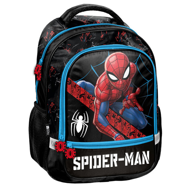 Spider-Man Rugzak, Senses. Stoere Spider-Man rugtas met meerdere vakken. Ideaal voor gebruik op school of een dagje weg! Met de afbeelding van Spiderman gooi jij hoge ogen op het schoolplein. De tas is voorzien van maar liefst twee ruime vakken met rits en een voorvak met rits. Een eventuele drinkbeker kan je kwijt in de twee open zijvakken. Een leuk cadeau idee voor een echte fan van superhelden voor een verjaardag of andere vrije dag!