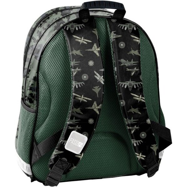 Vliegtuigfans opgelet! Met deze stoere vliegtuig rugzak heb je een gegarandeerde blikvanger te pakken! De tas heeft een afbeelding van een oude gevechtsvliegtuig en is afgewerkt met een stoer camouflage dessin. De tas heeft maar liefst drie vakken met rits en biedt genoeg ruimte voor diverse schoolspullen zoals schriftjes, etui en een lunchdoos (let op: NIET geschikt voor een A4-map). Maar de tas is ook zeker geschikt voor een dagje weg of het sporten. Een geweldig cadeau idee voor elke piloot in spé voor het nieuwe schooljaar, een verjaardag of andere feestelijke dag!