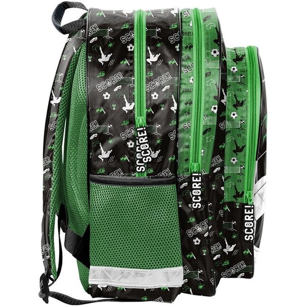 Voetbalfans opgelet! Met deze Voetbal Rugtas ga je gegarandeerd hoge ogen gooien! Een geweldige tas met 3 vakken met rits. Welke genoeg ruimte biedt voor je schoolspullen, zoals schriftjes, etui en een lunchdoos (NIET geschikt voor een A4 map!). Uiteraard ook handig om te gebruiken voor een dagje weg of het sporten. Met de fantastische afbeelding van een voetbalveld en voetballen op deze rugzak heb je een echte blikvanger te pakken en toon jij je liefde voor deze sport! Ook leuk om cadeau te geven voor een nieuw schooljaar, verjaardag of gewoon zomaar als verrassing. Wie maak jij blij met deze stoere rugzak?