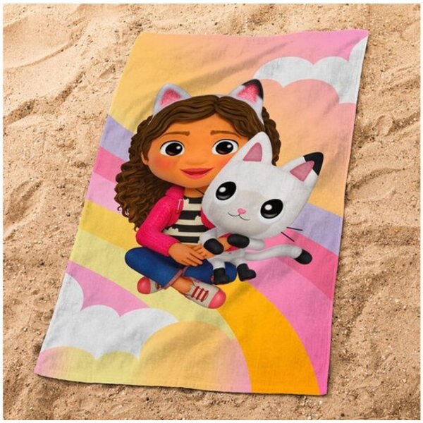 Zon, zee en...Gabby! Met dit kleurrijke strandlaken van Gabby's Poppenhuis neem je de magie van Gabby overal mee naar toe. Of je nu naar het strand gaat, het zwembad induikt of lekker in de tuin ligt; dit zachte katoenen badlaken is perfect voor elke zonnige dag. Ook ideaal voor gebruik thuis in de badkamer, uiteraard. Het vrolijke design van Gabby en Pandy Poek zorgen ervoor dat je een echte blikvanger te pakken hebt. Niet alleen praktisch, maar ook een feestje om te zien. Een leuk cadeau idee voor een echte fan van Gabby's Dollhouse voor een verjaardag of andere feestelijke dag.