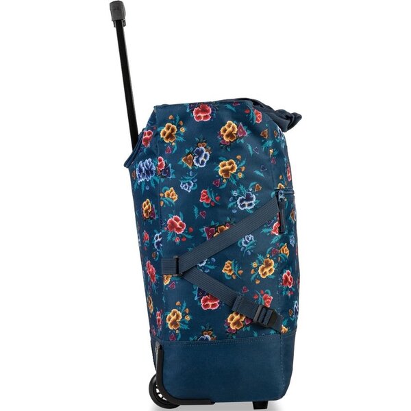 Frida Kahlo Trolley, Flowers. Reis in stijl met deze prachtige trolley van Frida Kahlo. Niet alleen is deze trolley zeer praktisch, maar ook een eerbetoon aan de iconische Mexicaanse kunstenares Frida Kahlo, die bekend stond om haar kleurrijke en expressieve kunst, vaak met bloemen als centraal thema. Deze bloemen zijn ook terug te zien in het dessin om deze mooie tas. Ideaal voor korte reizen, weekenduitstapjes of als stijlvolle boodschappen trolley. Dankzij de uitschuifbare handvat en soepel rollende wieltjes overal moeiteloos mee naar toe te nemen. Of je nu door de stad wandelt of een vlucht naar je volgende bestemming neemt, met deze trolley heb je altijd alles binnen handbereik.